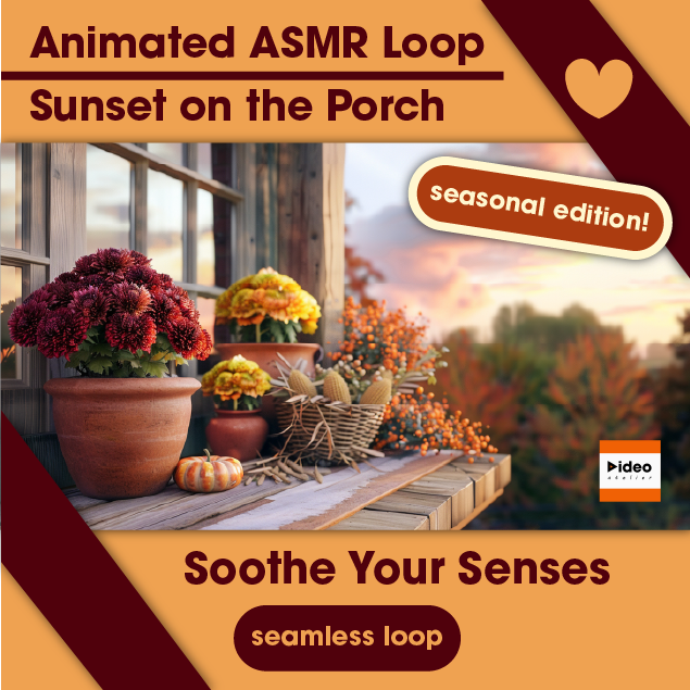 Harvest Video ASMR "Sunset on the Porch" | Autumn Thanksgiving Flowers Pumpkin 3 mins 1080p Full HD Relaxing Calming Stress Relief Sleep