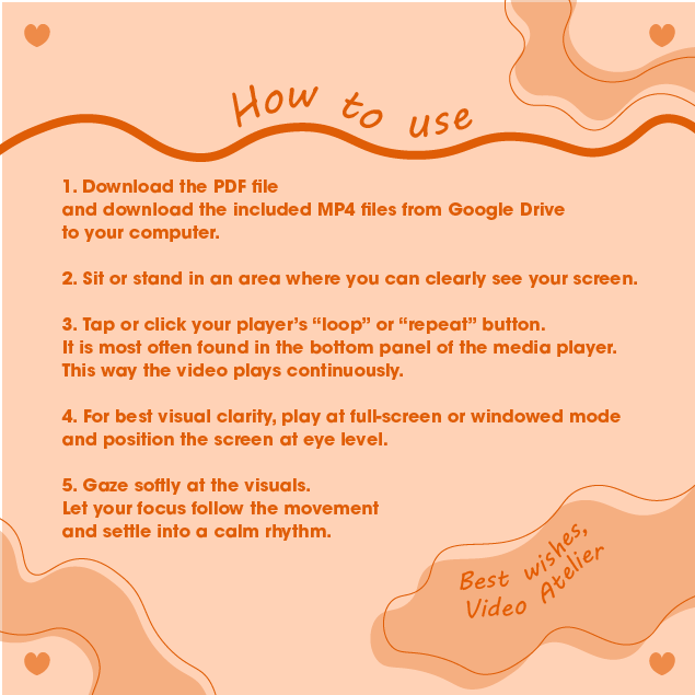 After purchase, download the PDF file and download the included MP4 files from Google Drive to your device.