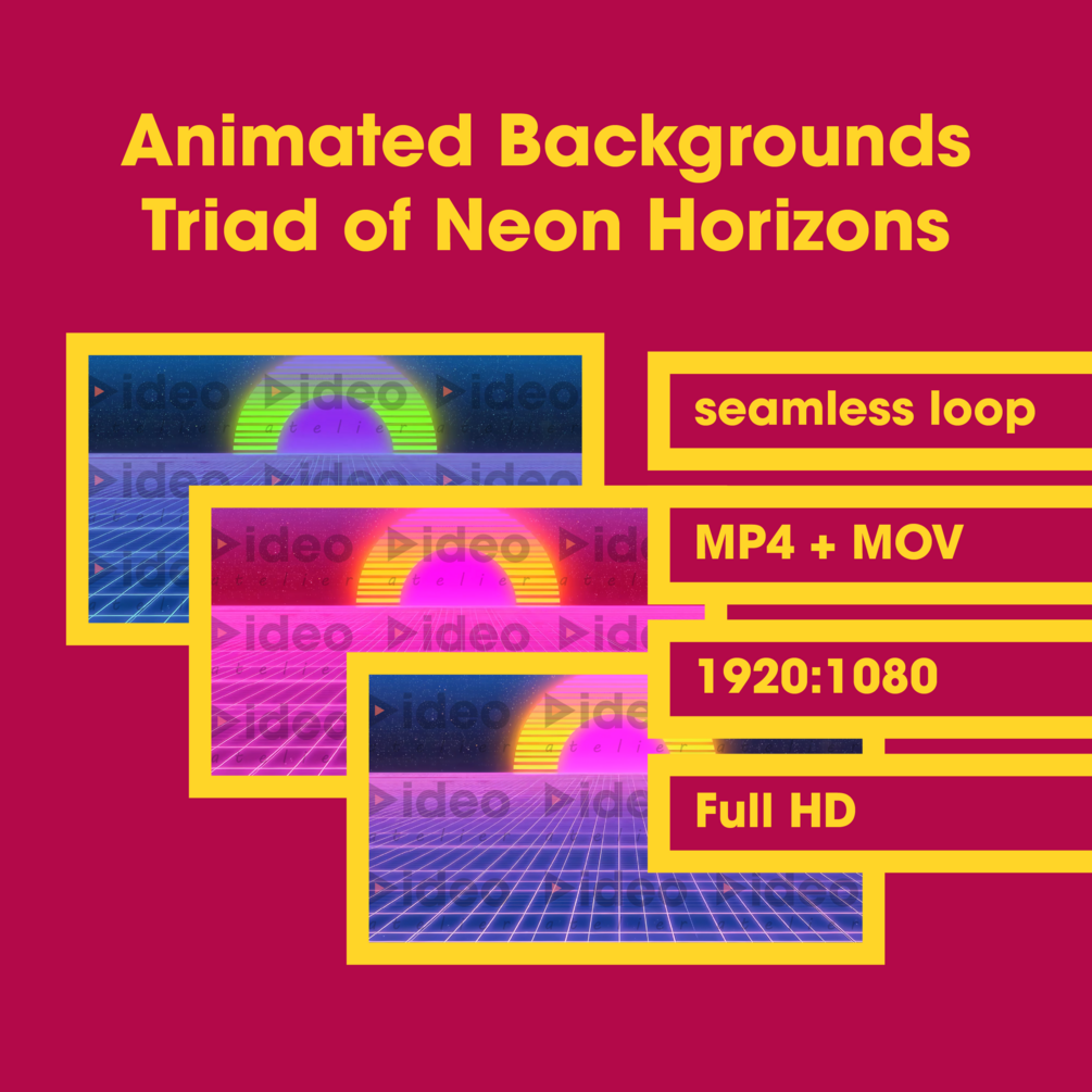 Triad of Neon Horizons Bundle • Zoom Teams Streamer Background Neon Club Office Video Digital Loop Full HD Seamless Virtual Ambient Modern