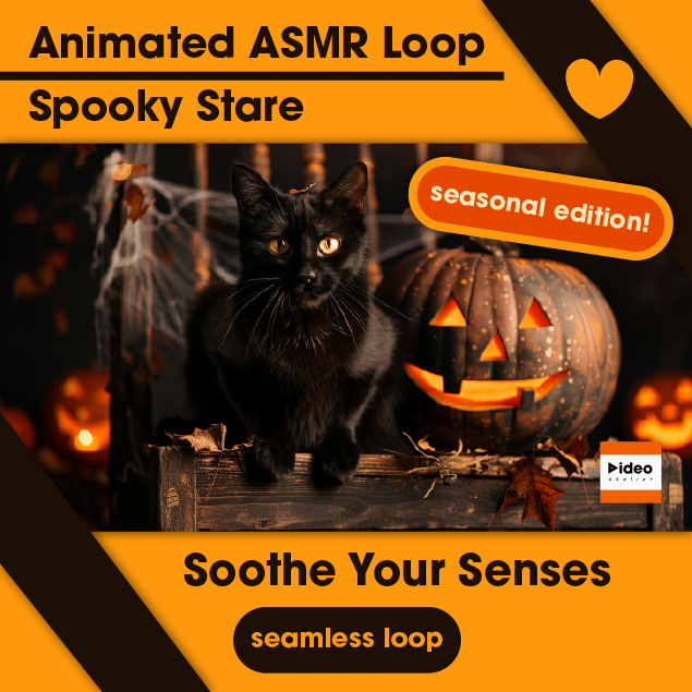 Spooky Stare | Halloween ASMR Autumn Black Cat Creepy Pumpkin Video 1.5 mins 1080p Full HD Relaxing Calming Stress Relief Sleep Focus