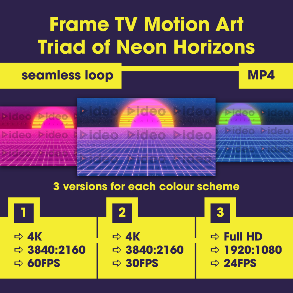 Triad of Neon Horizons Bundle • Frame TV Motion Art Video Home Office Neon Digital Loop • Low Stim • 4K • Seamless | Virtual Ambient Modern